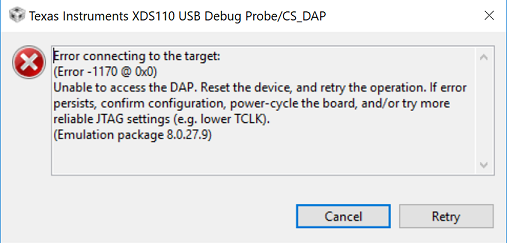 Receiving Error -1170 (Unable to access the DAP) during debugging?