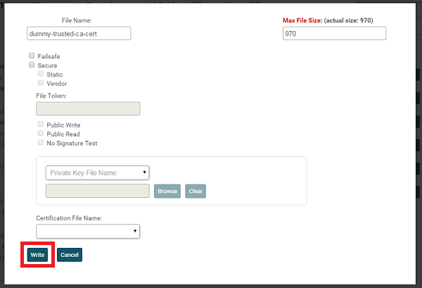 Since we are adding a dummy certificate here which is publicly available, we can continue without security considerations by selecting Write.