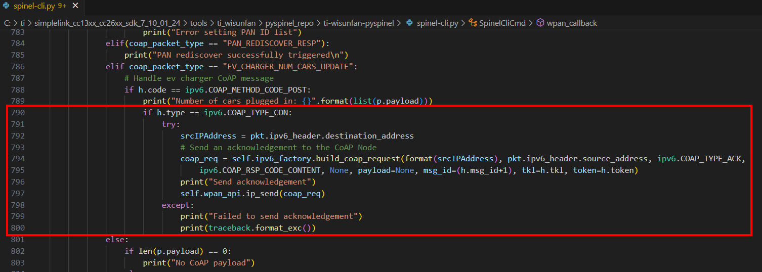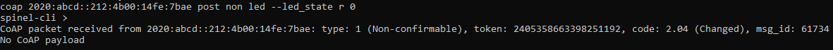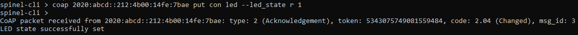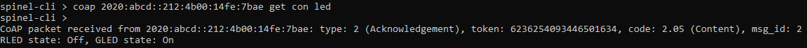 The functionality of the PySpinel CLI has to be extended such that it sends an acknowledgement to the CoAP Node after receiving a confirmable message. You have to extend the