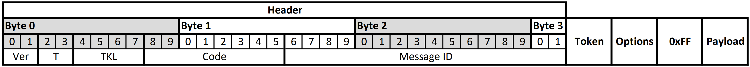 The CoAP messages are sent over UDP and are encoded in a simple binary format which is presented below.