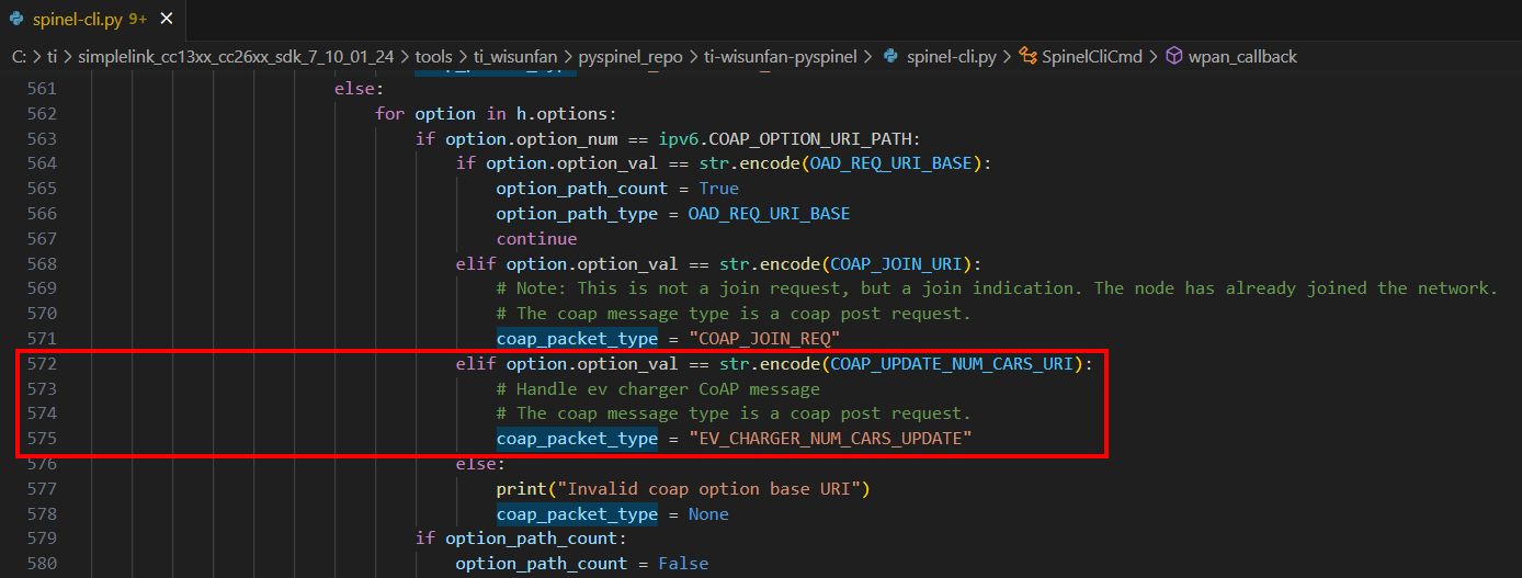 elif option.option_val == str.encode(COAP_UPDATE_NUM_CARS_URI): # Handle ev charger CoAP message # The coap message type is a coap post request. coap_packet_type = "EV_CHARGER_NUM_CARS_UPDATE"