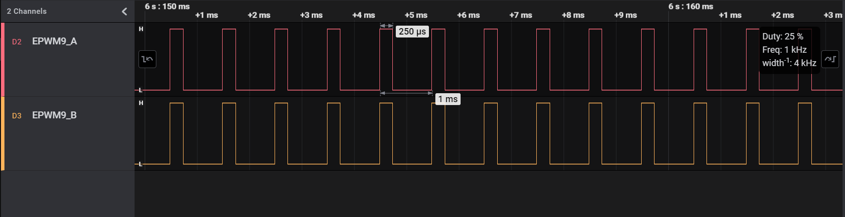 - EPWM9_A/B (EPWM2_A/B in case of AM261x-LP) pin can be connected to an oscilloscope to view the waveform.