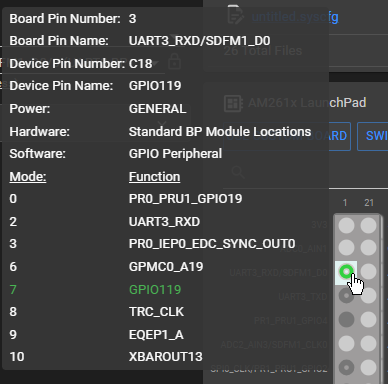 MuxMode 7 on this pin indicates that GPIO119 is accessible on this pin. In the Software tab, navigate to /drivers/gpio/gpio.