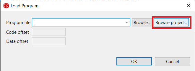 - In the "Load Program" dialog, select "Browse Project", select the project and then select the program as shown below,