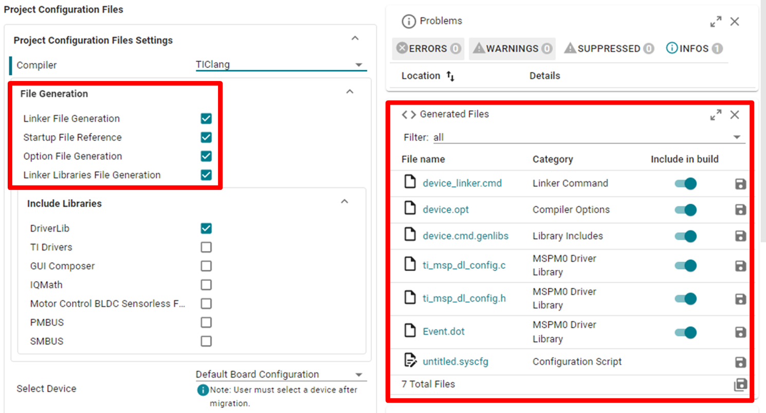 For more details on generated Project Configuration files, visit the Using SysConfig with MSPM0 Guide.