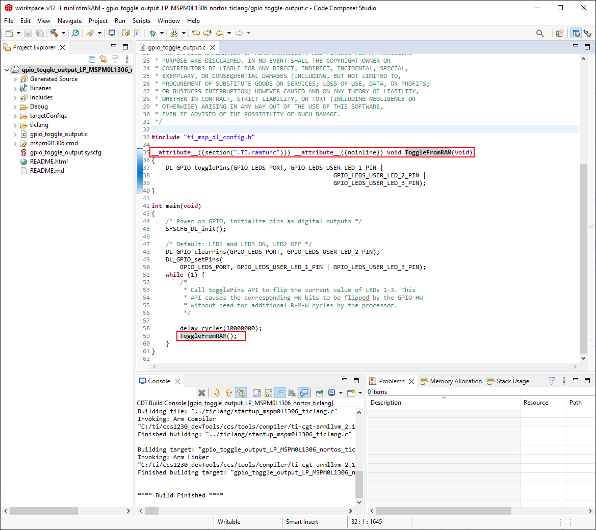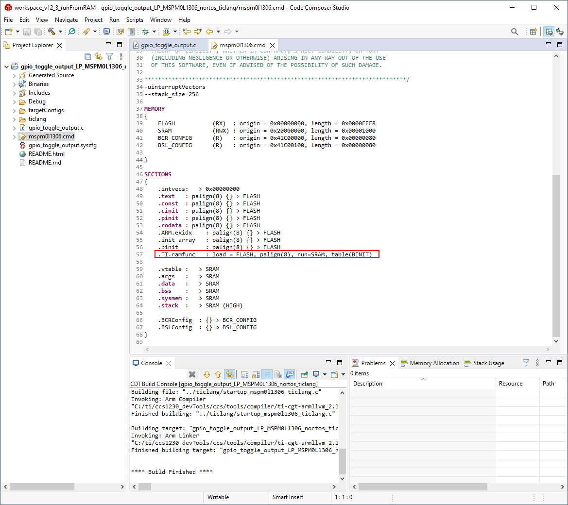 .TI.ramfunc. Note that the linker files included in MSPM0-SDK already include this placement but it will only be applicable if any functions are placed in.TI.ramfunc.