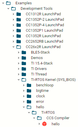 - Application projects (e.g. TI Drivers examples) point to a TI-RTOS kernel configuration project