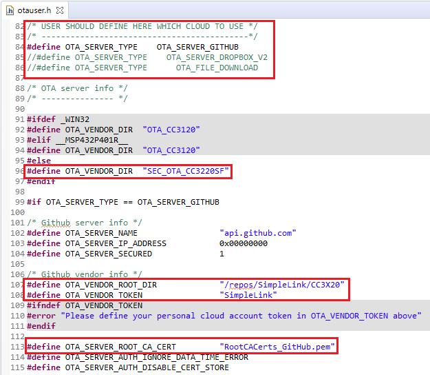 GITHUBsection:#define OTA_VENDOR_ROOT_DIR"/repos/SimpleLink/CC3X20"#define OTA_VENDOR_TOKEN"SimpleLink"