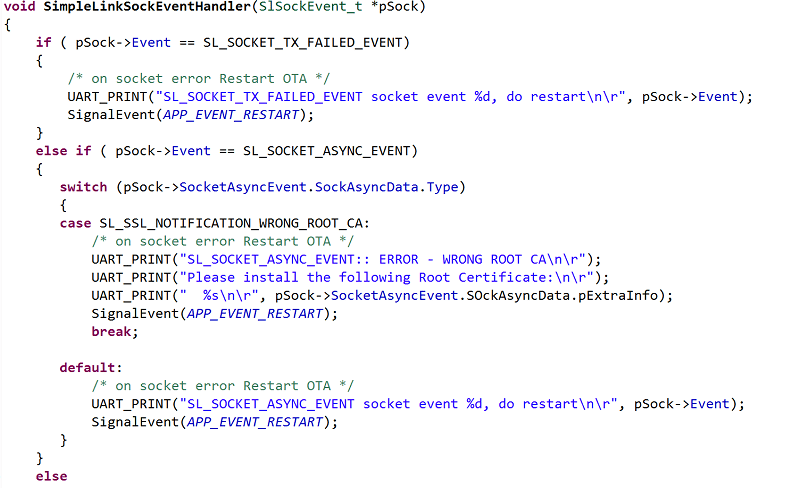 cloud_ota.c :: SimpleLinkSockEventHandler() - Else-if statement