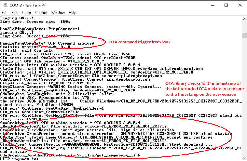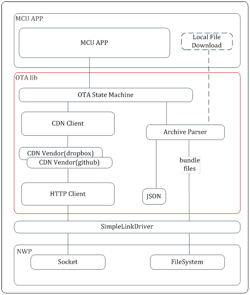 - The SimpleLink OTA library offloads the above OTA actions and provides a simple API for the application.