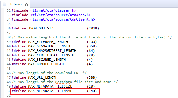 otaproject, open theOtaJson.cfile and update theMAX_METADATA_FILENAMEdefinition to reserve room for the long Github URL name.