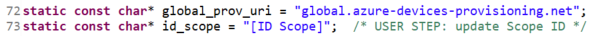 prov_dev_client_ll_sample.cand find theid_scopedeclaration. In the Azure portal, go to the Overview of your DPS instance to find the ID Scope. Copy this ID scope and use it to update theid_scopestring in your code.