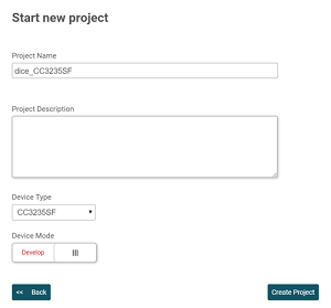 Open UniFlash ImageCreator and create a new project. We will want the device in Development mode for this lab.