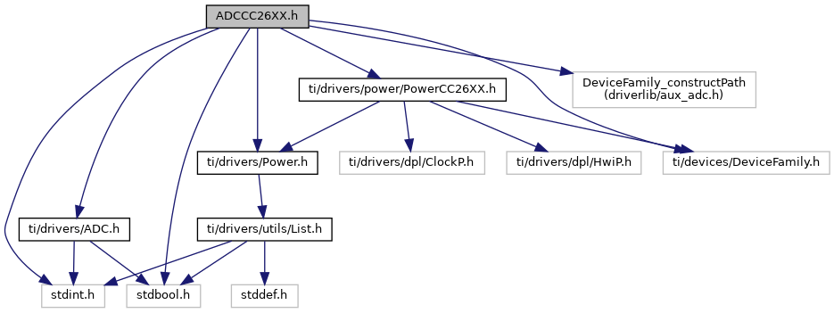 #include <stdint.h>#include <stdbool.h>#include <ti/drivers/ADC.h>#include <ti/drivers/Power.h>#include <ti/drivers/power/PowerCC26XX.h>#include <ti/devices/DeviceFamily.h>#include <DeviceFamily_constructPath(driverlib/aux_adc.h)>