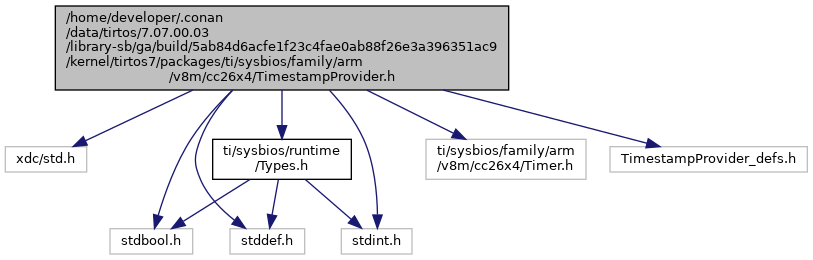 #include <xdc/std.h>#include <stdbool.h>#include <stddef.h>#include <stdint.h>#include <ti/sysbios/runtime/Types.h>#include <ti/sysbios/family/arm/v8m/cc26x4/Timer.h>#include "TimestampProvider_defs.h"