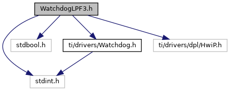| Generic API Function | API Function | Description | |---------------------------— |-------------------------------— |------------------------------------------------— | | Watchdog_init() | WatchdogLPF3_init() | Initialize Watchdog driver | | Watchdog_open() | WatchdogLPF3_open() | Initialize Watchdog HW and set system dependencies | | Watchdog_clear() | WatchdogLPF3_clear() | Reload Watchdog counter | | Watchdog_setReload() | WatchdogLPF3_setReload() | Update Watchdog timer reload value in clock ticks | | Watchdog_convertMsToTicks() | WatchdogLPF3_convertMsToTicks() | Converts milliseconds to clock ticks |