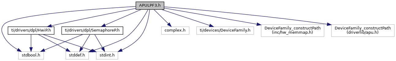 #include <stddef.h>#include <stdint.h>#include <stdbool.h>#include <complex.h>#include <ti/drivers/dpl/HwiP.h>#include <ti/drivers/dpl/SemaphoreP.h>#include <ti/devices/DeviceFamily.h>#include <DeviceFamily_constructPath(inc/hw_memmap.h)>#include <DeviceFamily_constructPath(driverlib/apu.h)>