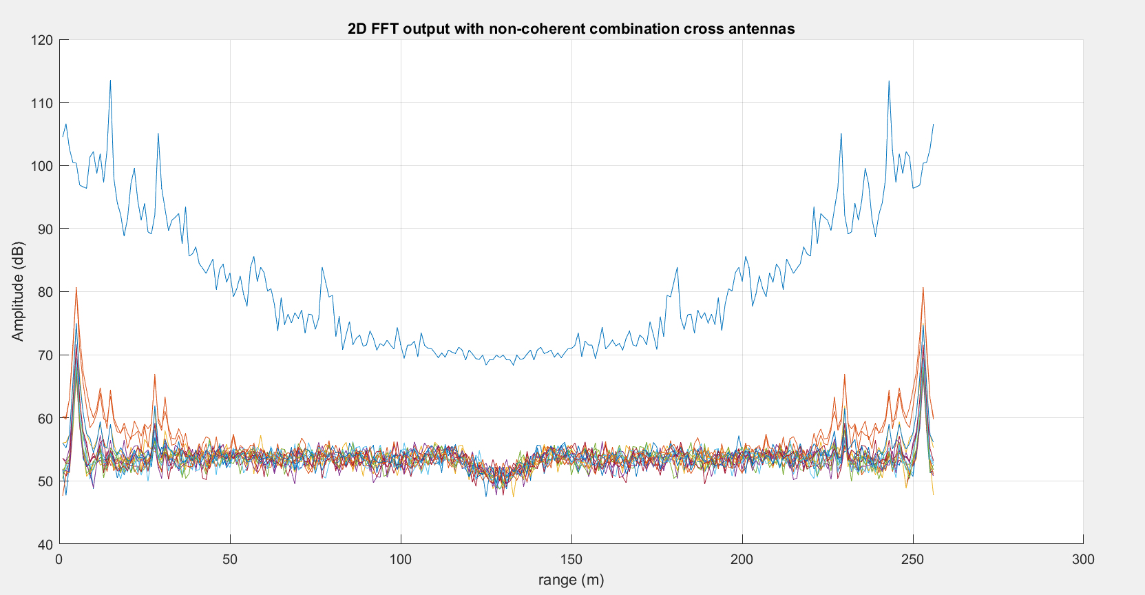 The procedure is implemented by the function mmwDemo_rangeBiasRxChPhaseMeasure(). It is called in the processing chain after the range processing DPU. The input to the procedure is a radar cube. The measurement procedure first calculates the range profile as the sum of the magnitude squares across all antennas on the range FFTs. Then it searches for the peak in the zone 𝑋−𝐷/2 ≤ 𝑟𝑎𝑛𝑔𝑒 ≤ 𝑋+𝐷/2 where 𝐷 = searchWindow and 𝑋 = targetDistance.