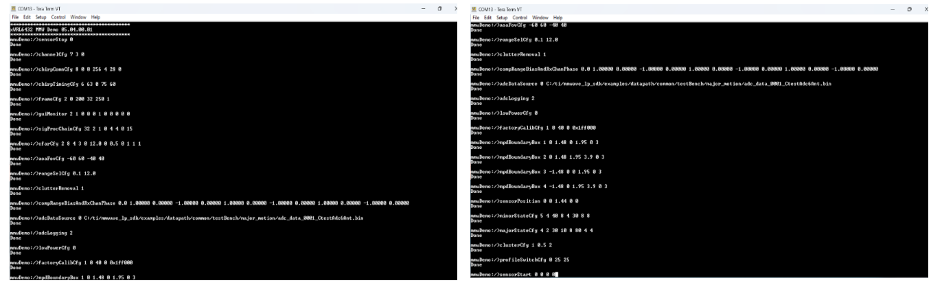 | sensorStop | Reserved | Default value: 0 NOTE: This command(sensorStop 0) stops the sensor from transmitting further frames. |