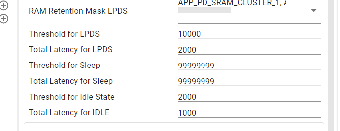 Threshold and latency values can be changed (tuned) to meet specific application requirements. Threshold and Latency values for different power modes can be configured in Power Syscfg: