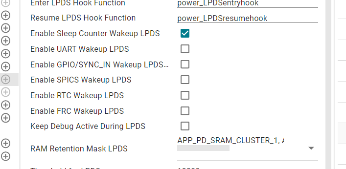 Enabling wake-up sources from LPDS state: Wake-up from Deep sleep exit is provisioned in the device through a number of external wakeup sources like UART/SPI/GPIO/SYNC_IN/Sleep counter, etc. By Default wake-up using Sleep Counter is enabled in Demo.