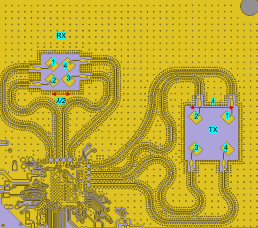 Below figure shows the antenna configuration on the xWRL684x EVM board.