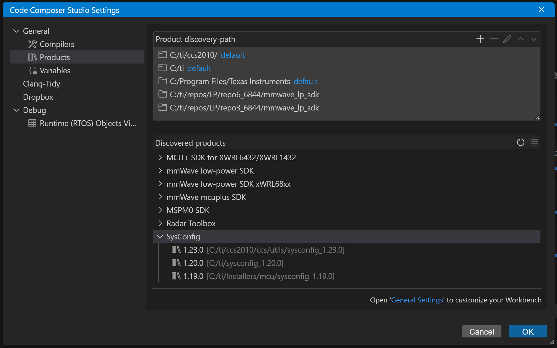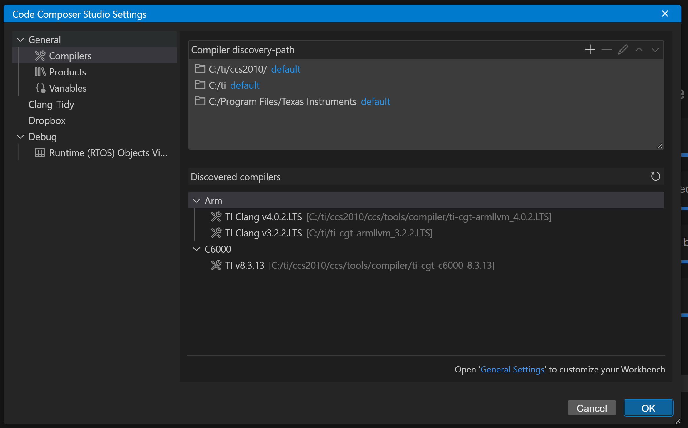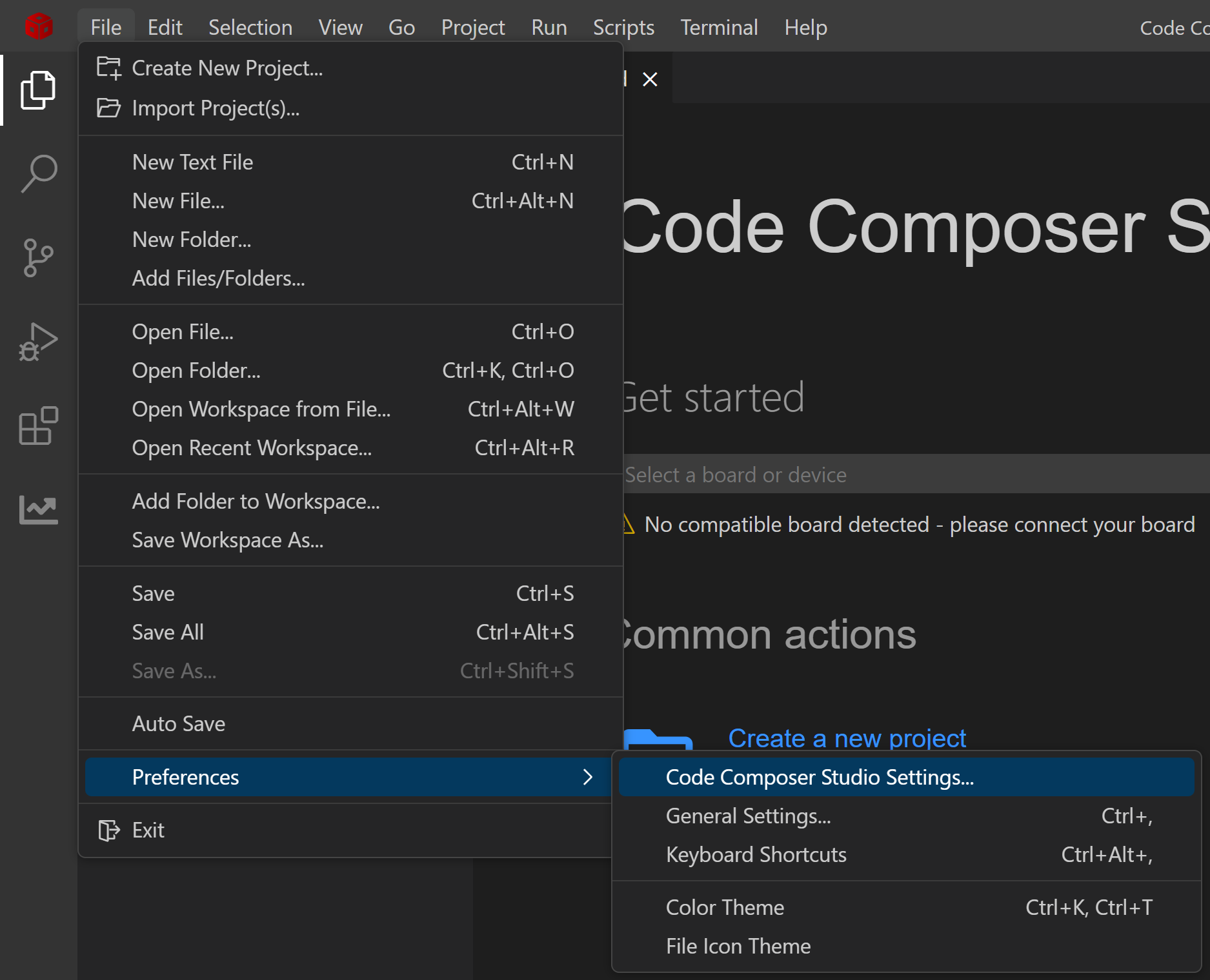 - In CCS, go to File > Preferences > Code Composer Studio Settings