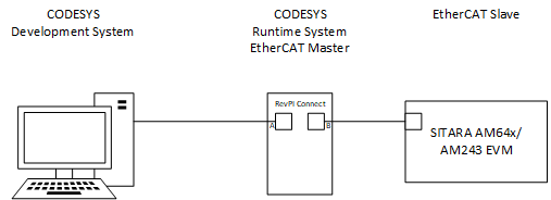 In the setup described in the diagram below, a CODESYS (https://www.codesys.com/) IEC 61131 development and runtime system is used with an AM64x SITARA Processor.