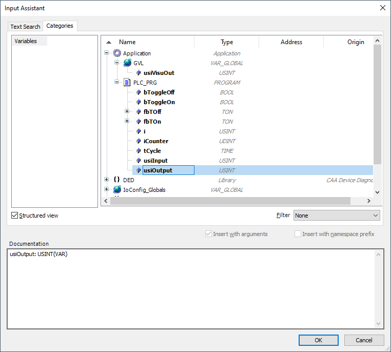 Also create a Global Variable List by right-clicking on Application → Add Object → Global Variable List... Add one variable usiVisuOut.