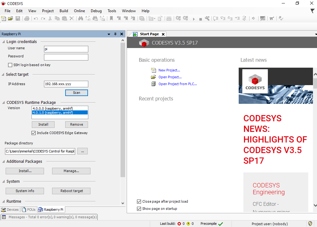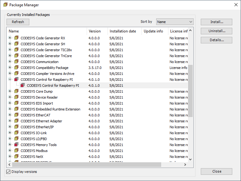Select the matching CODESYS Runtime Package and click install. To verify that the installation has been sucessful, select System info.
