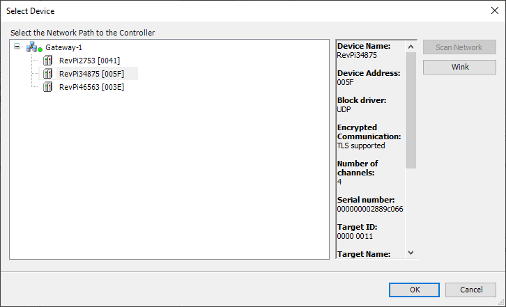 Perform a Scan Network and select the corresponding device in the Select Device dialog.
