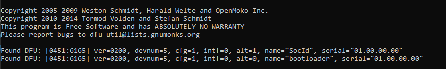 $ dfu-util -a 0 -i 0 -t 64 -D <path_to_sbl_dfu_uniflash.release.tiimage>