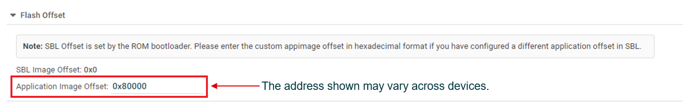 • The SBL and application image flash offsets are handled internally based on the device's SBL configuration.