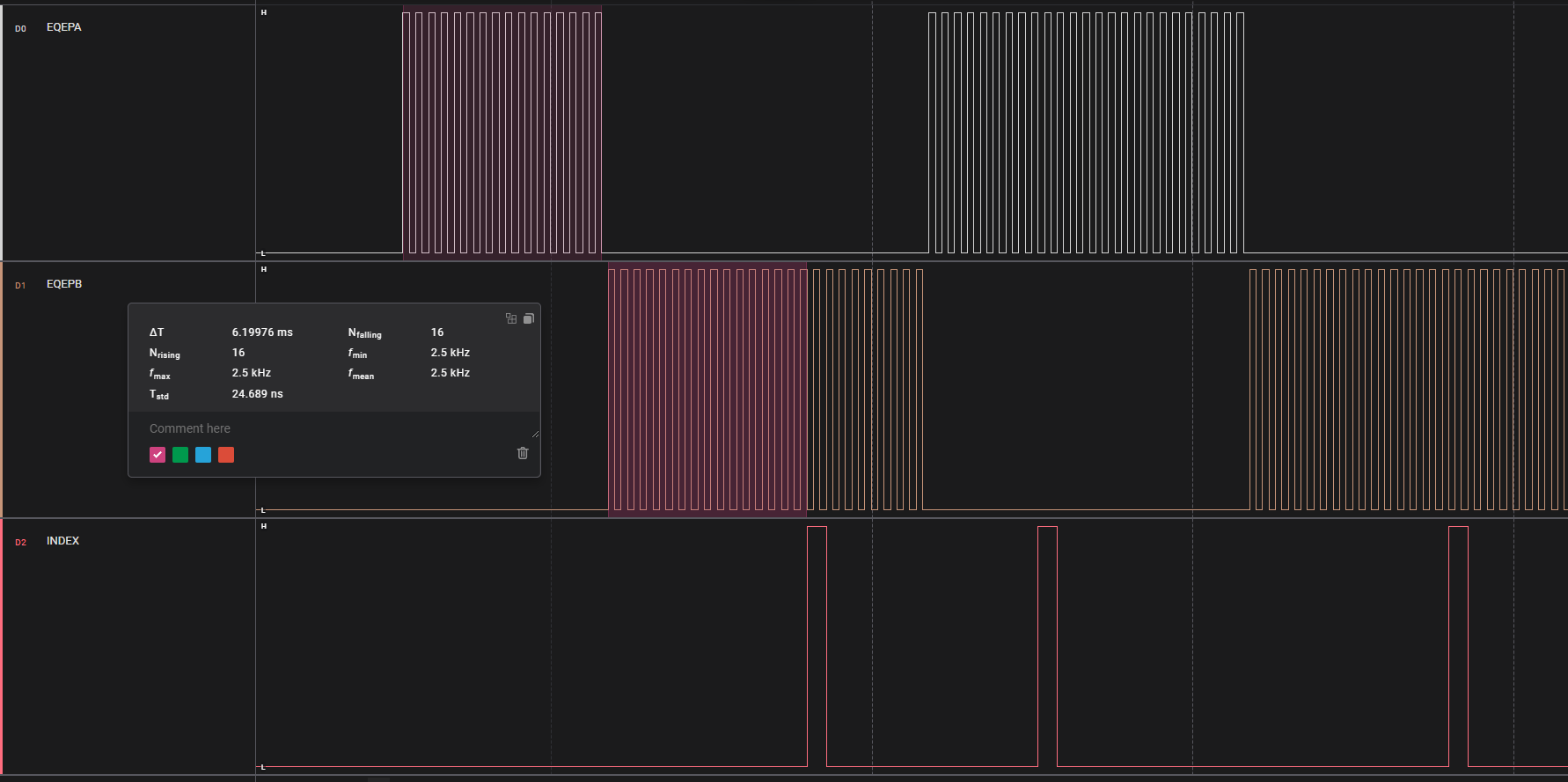 EQEP CW/CCW Input pulses, Index Pulse visible at count 0