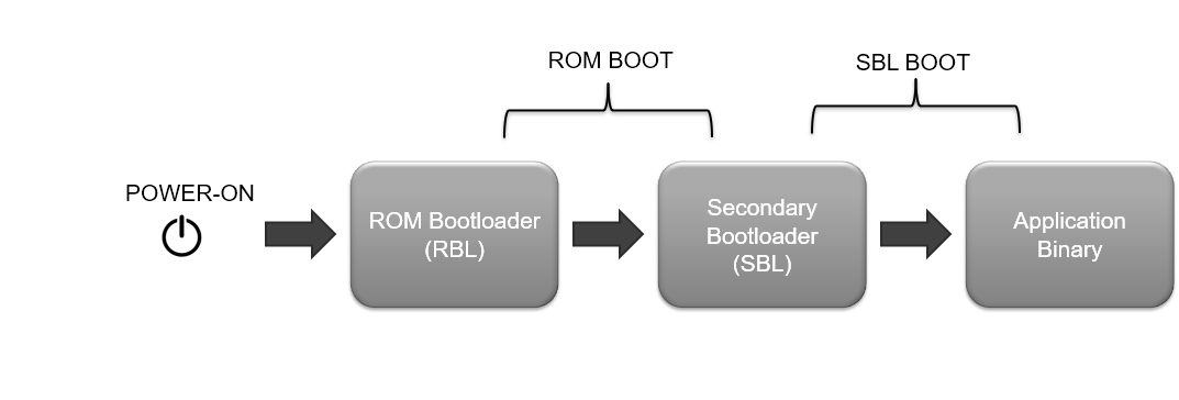 The RBL or ROM Bootloader is stored in read-only memory and is almost considered as part of the SoC. The details regarding the RBL and ROM Boot is out of scope for this user guide. Please refer to the Technical Reference Manual of the device for more details. But basically the ROM expects an x509 signed binary image of the secondary bootloader to be provided for boot.
