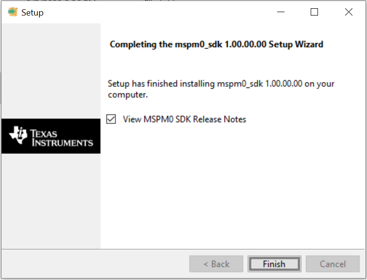Download and install the latest MSPM0 SDK. Note that there are SDK installers for Windows, Linux and MacOS. The steps below are shown in Windows, but a similar approach should be followed in Linux or MacOS.