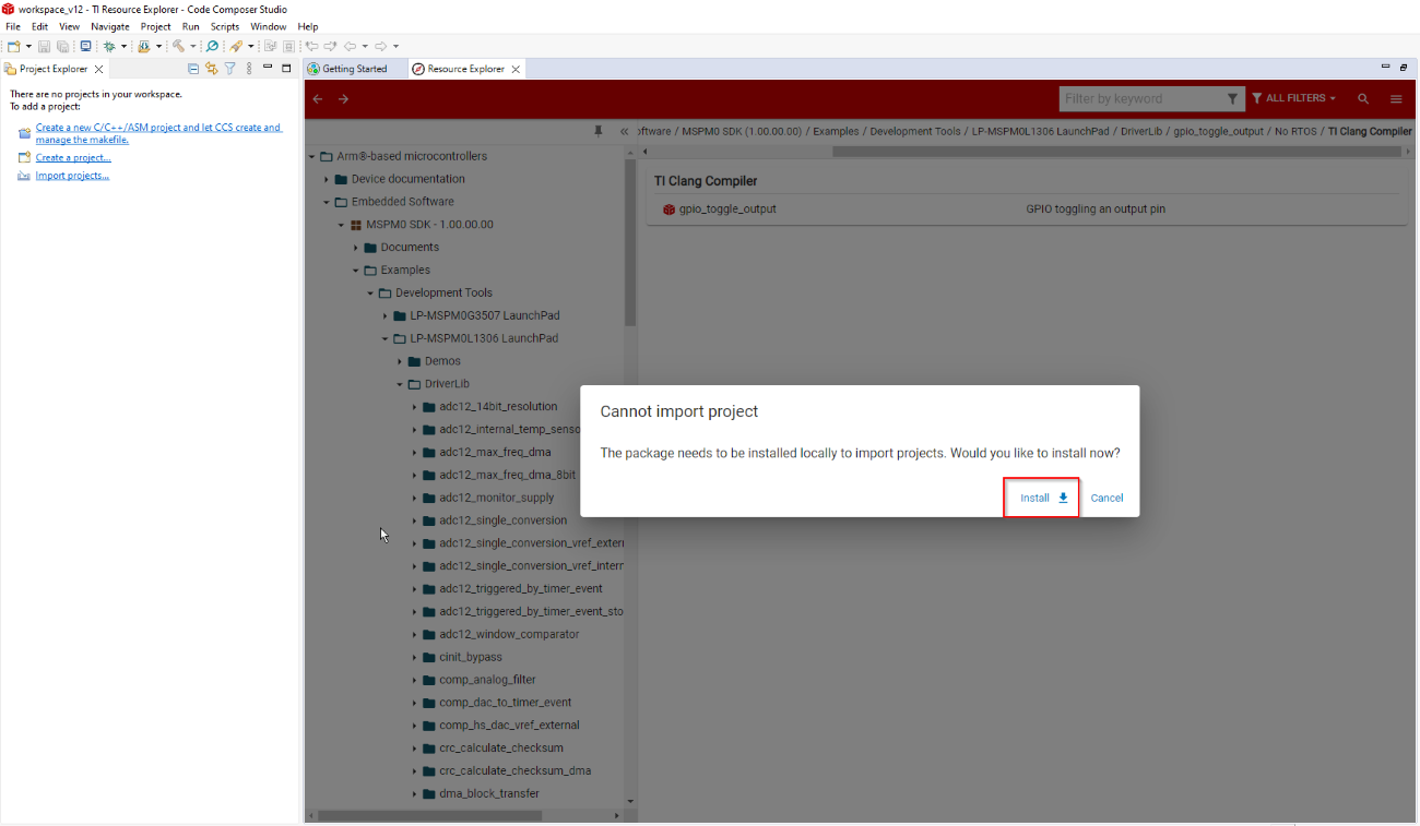 Once the SDK is installed, import to CCS IDE by pressing on the 3 dots next to the project file