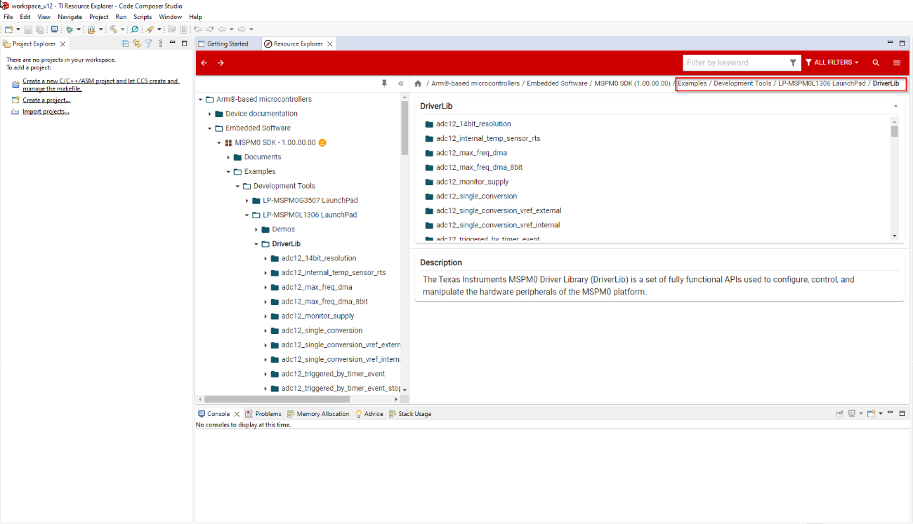 This guide is intended to assist users in the initial setup and demonstration of running their first MSPM0 application with CCS using TI Arm Clang. This guide is not intended to explain the functionality of CCS. Please refer to the documentation available through the Help menu in CCS or the CCS IDE Guide for MSPM0 MCUs included with the MSPM0 SDK documentation.