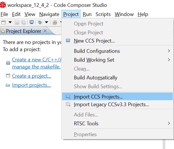 Go to Import CCS Projects as shown below.