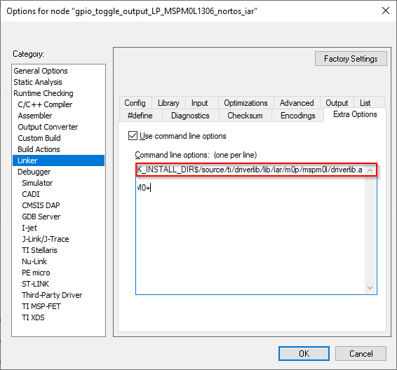 <sdk>\source\ti\devices\msp\m0p\linker_files\iarand<sdk>\source\ti\devices\msp\m0p\startup_system_files\iarrespectively.Resolve any other dependencies such as incompatible libraries and source code.