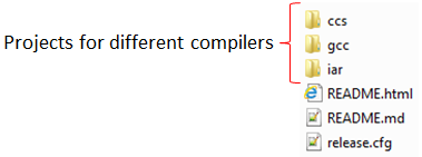 - Application projects (e.g. TI Drivers examples) point to a TI-RTOS kernel configuration project