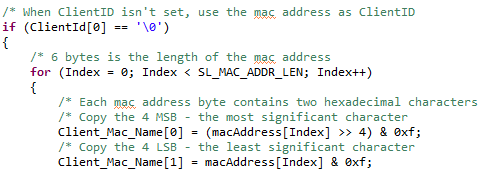 is not specified, it is by default set to the local MAC Address inSetClientIdNamefromMacAddress()