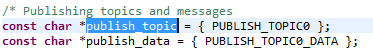 . This publishes the status of the LED.#include "stdio.h" #define PUBLISH_TOPIC1 "/simplelink/To/Broker" const char *publish_topic1 = { PUBLISH_TOPIC1 }; static void PublishLedStatusReport() { char pubMsg[20]; /* retreive status of LED0 */ sprintf(pubMsg, "L0=%d", GPIO_read(CONFIG_GPIO_LED_0)); /* send publish message */ MQTTClient_publish(gMqttClient, (char *)publish_topic1, strlen((char *)publish_topic1), pubMsg, 4, MQTT_QOS_2 | MQTT_PUBLISH_RETAIN); Display_printf(display, 0, 0, "\n\r SimpleLink Device Publishes the following message \n\r"); Display_printf(display, 0, 0, "Topic: %s\n\r", publish_topic1); Display_printf(display, 0, 0, "Data: %s\n\r", pubMsg); }