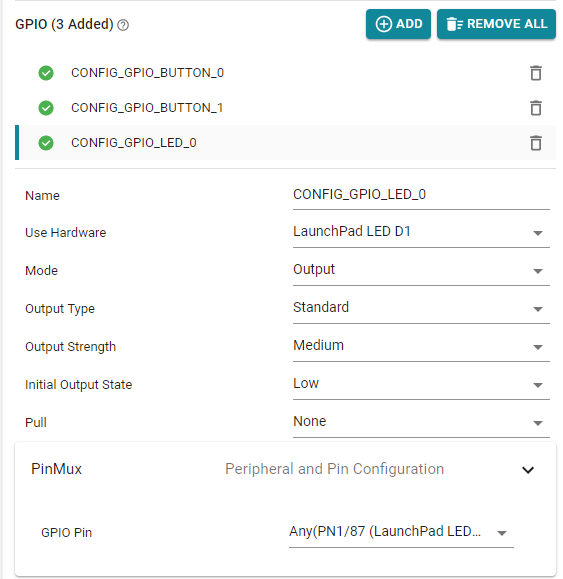 . - This will open the configurations of the different GPIOs that were configured for this example.